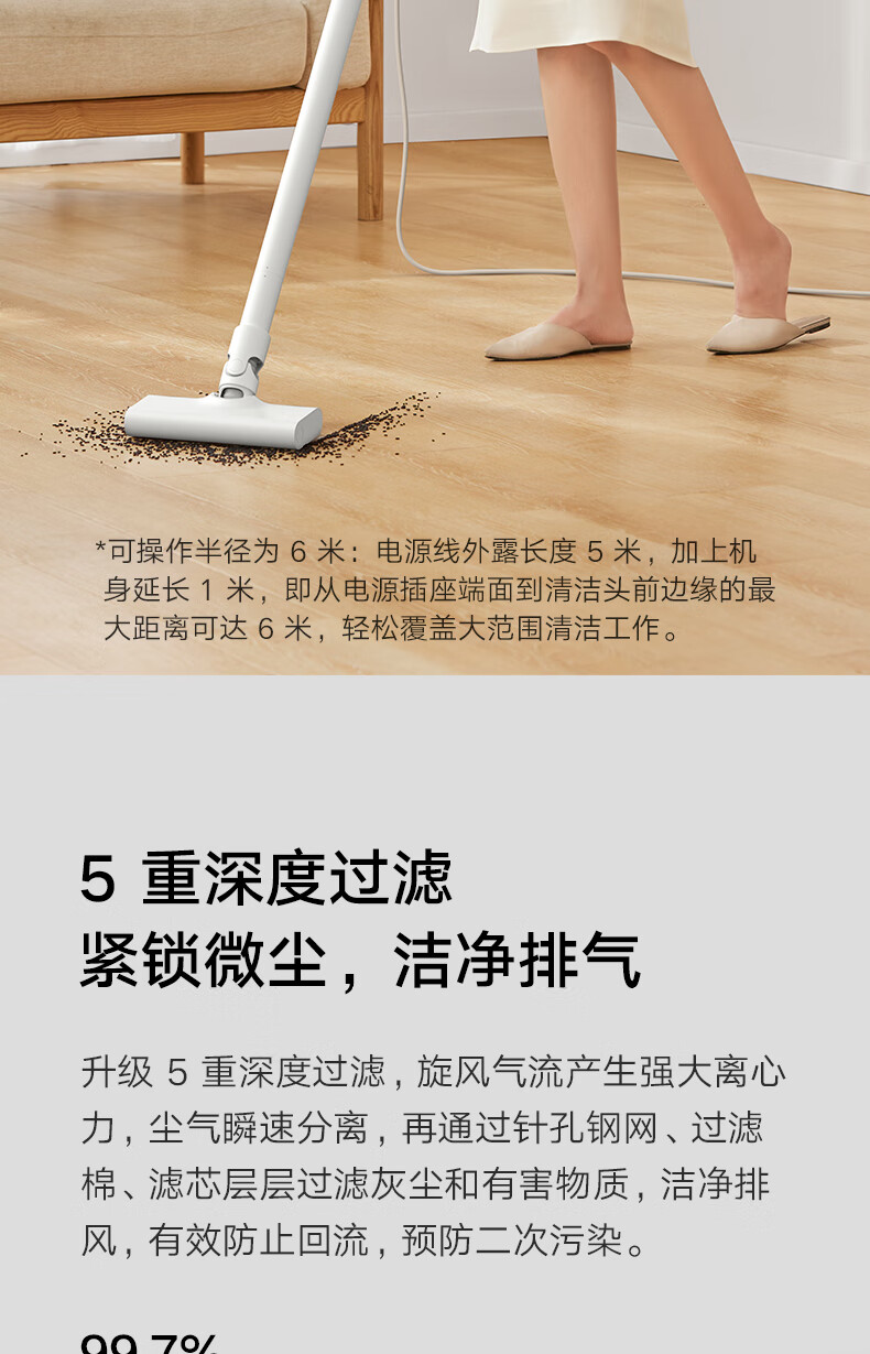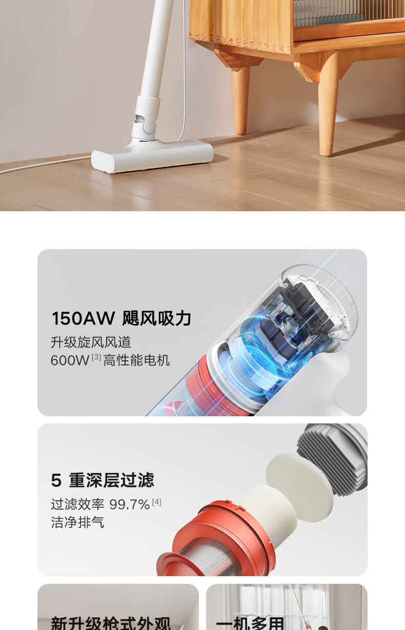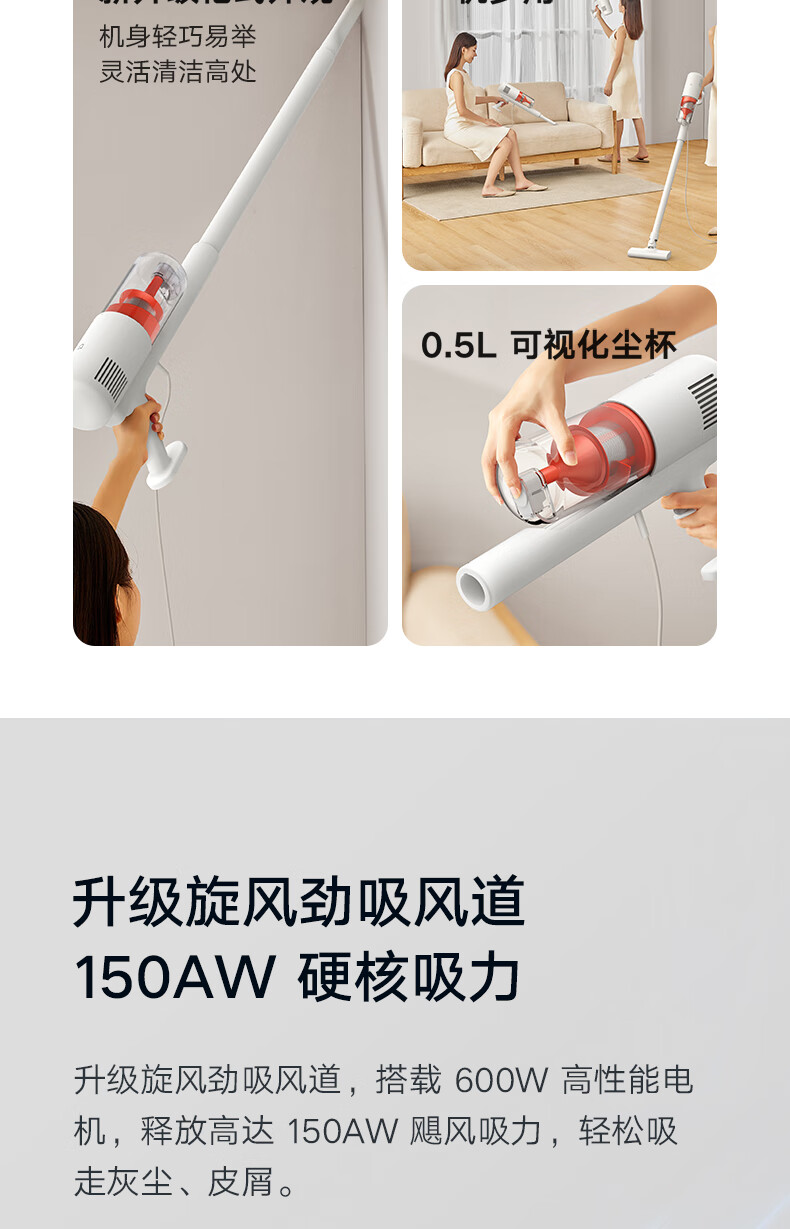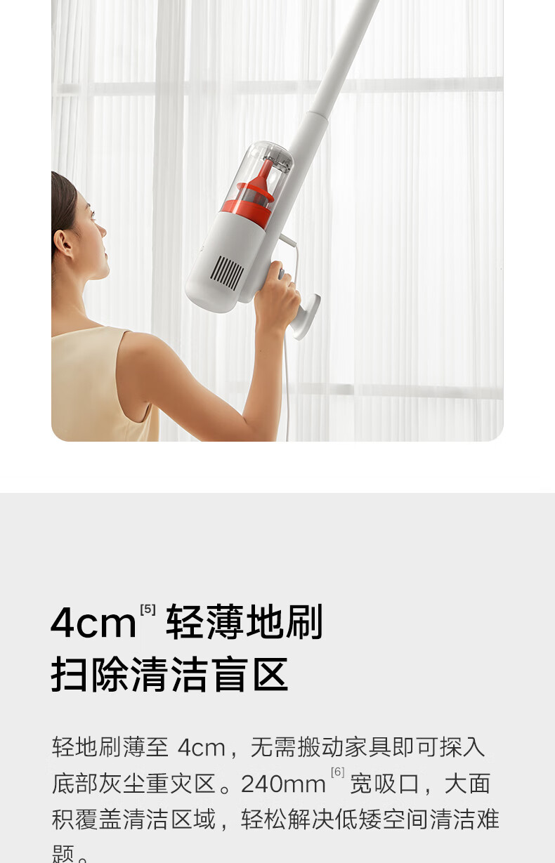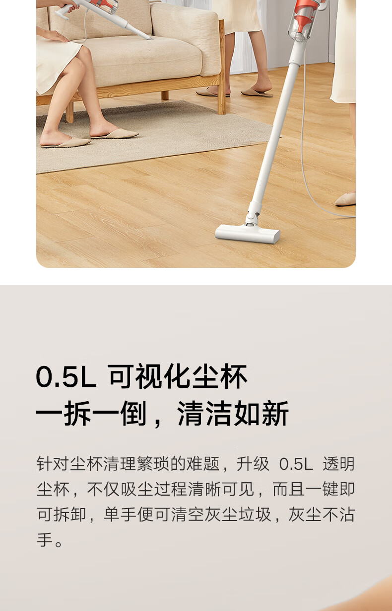 米家小米有线吸尘器家用升级风道一键拆卸可视化尘杯纤薄机身除尘 B210