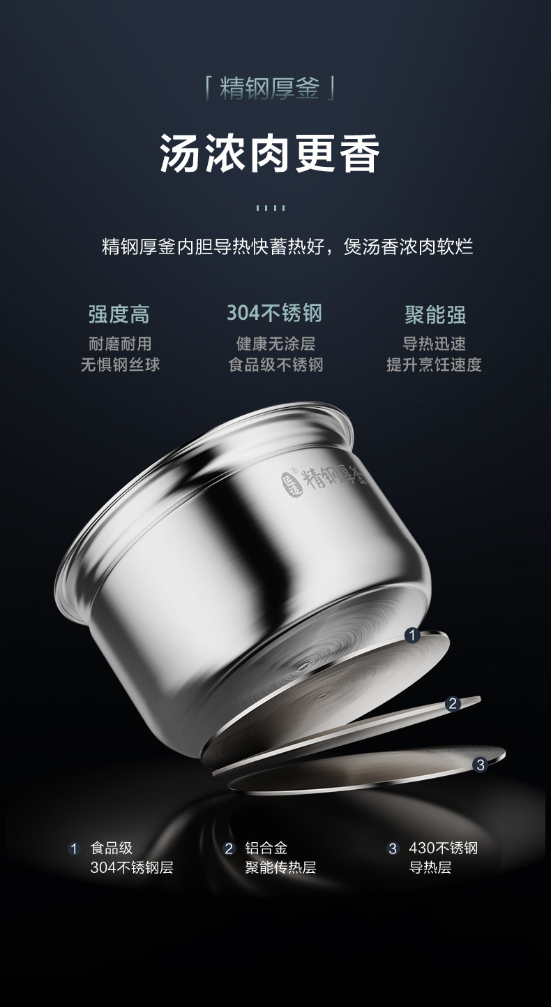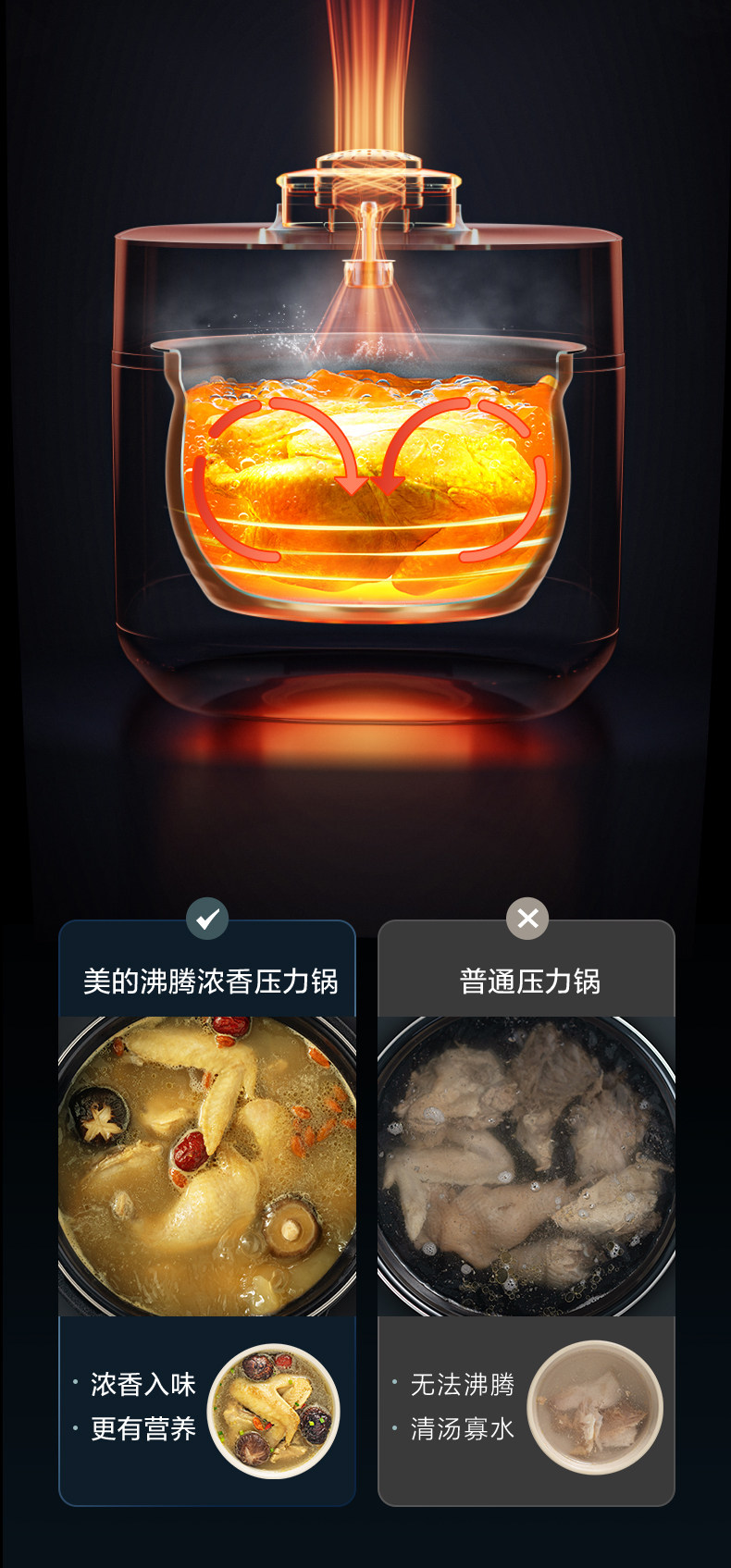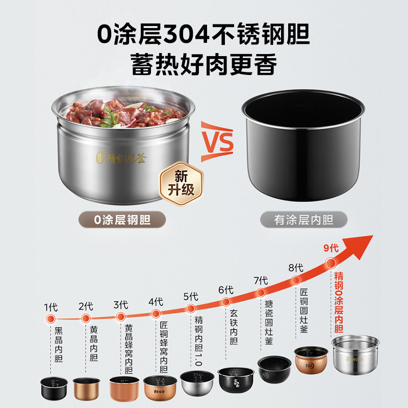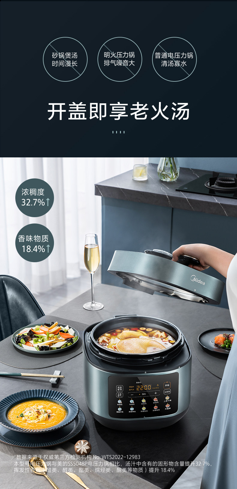 美的电压力锅家用5L大容量0涂层不锈钢双胆多功能智能饭煲高压锅