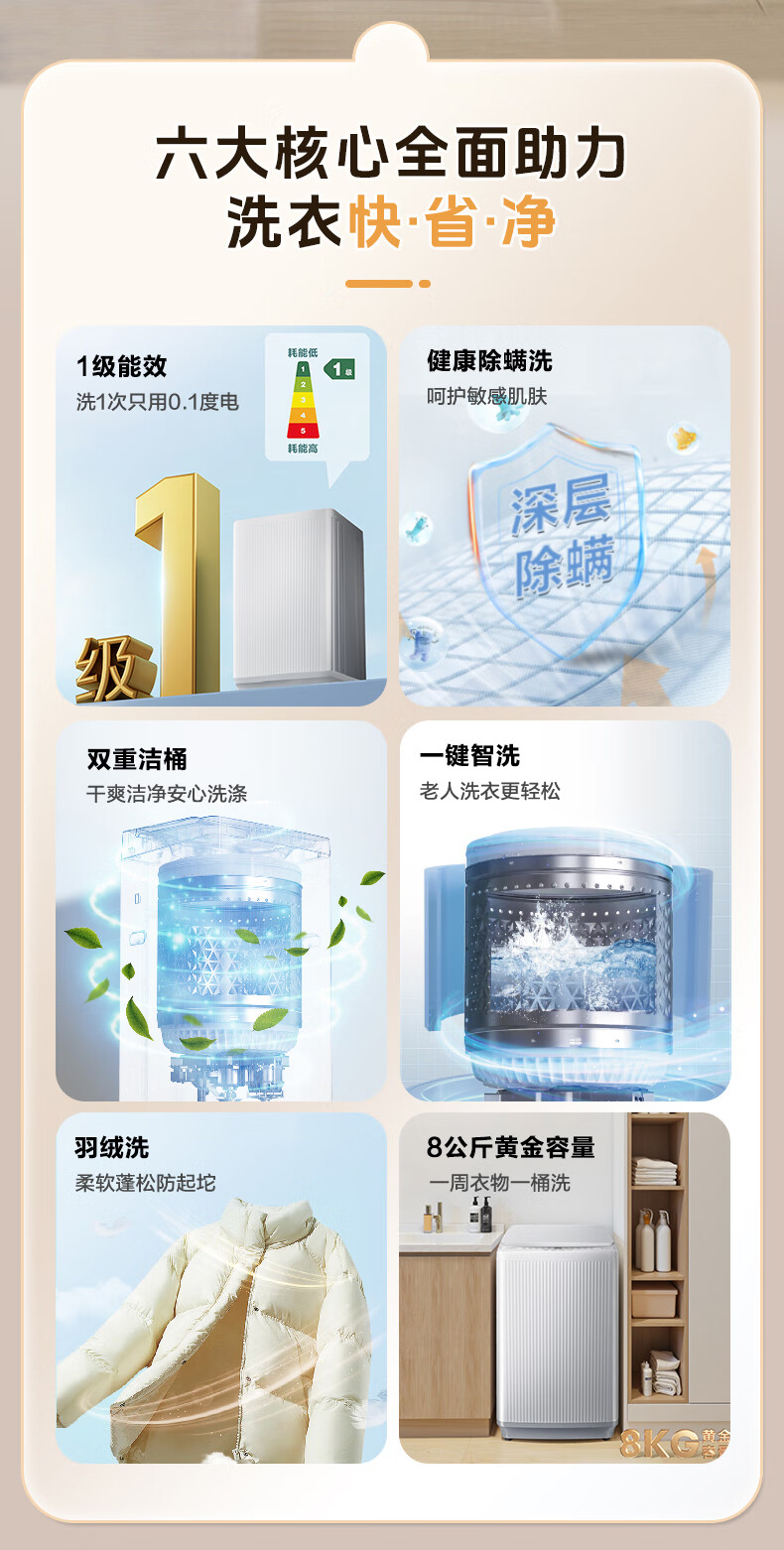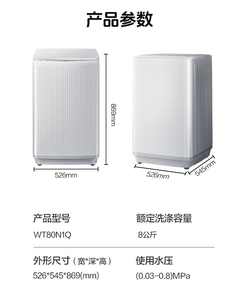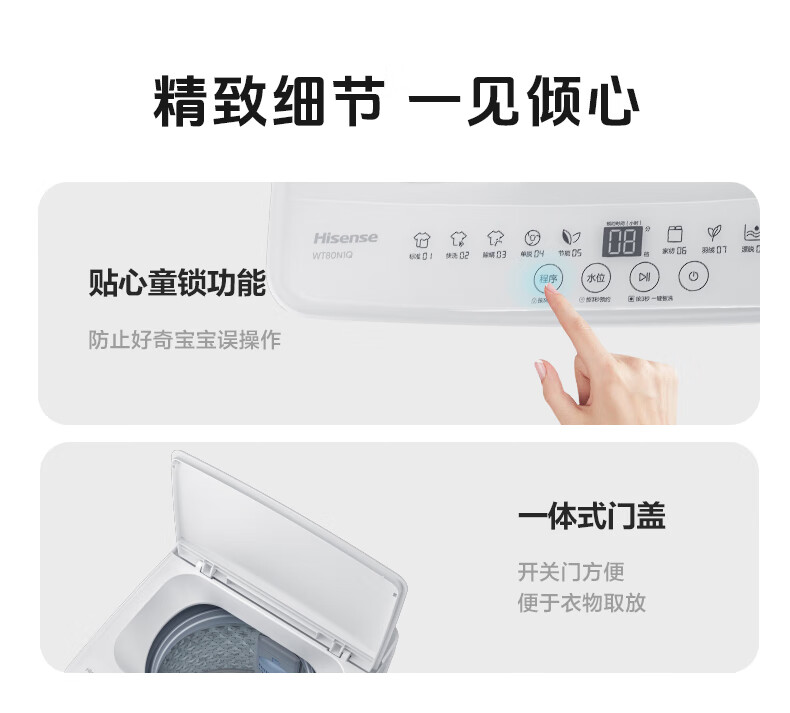 海信(Hisense)波轮洗衣机全自动 8公斤大容量波轮健康家用租房宿舍一级能效WT80N1Q以旧换新家电补贴20%