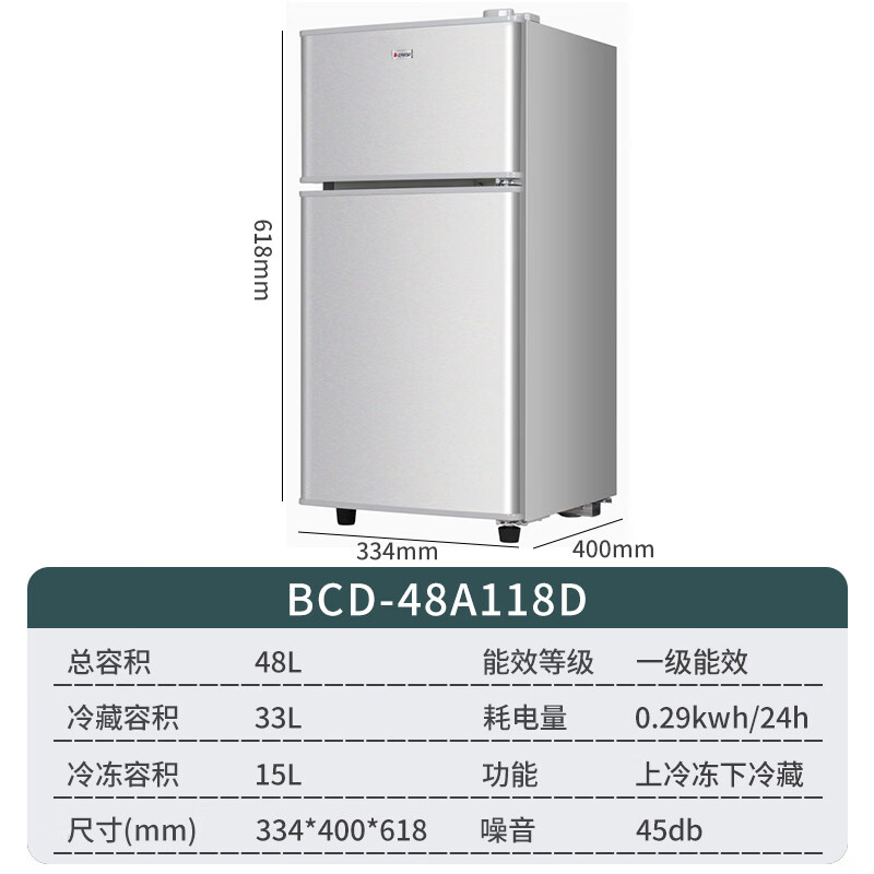 志高(CHIGO)小冰箱迷你小型家用冷藏冷冻两用宿舍出租房用双门办公室电冰箱节能省电 【店长推荐】48L银色【三天约一度电】