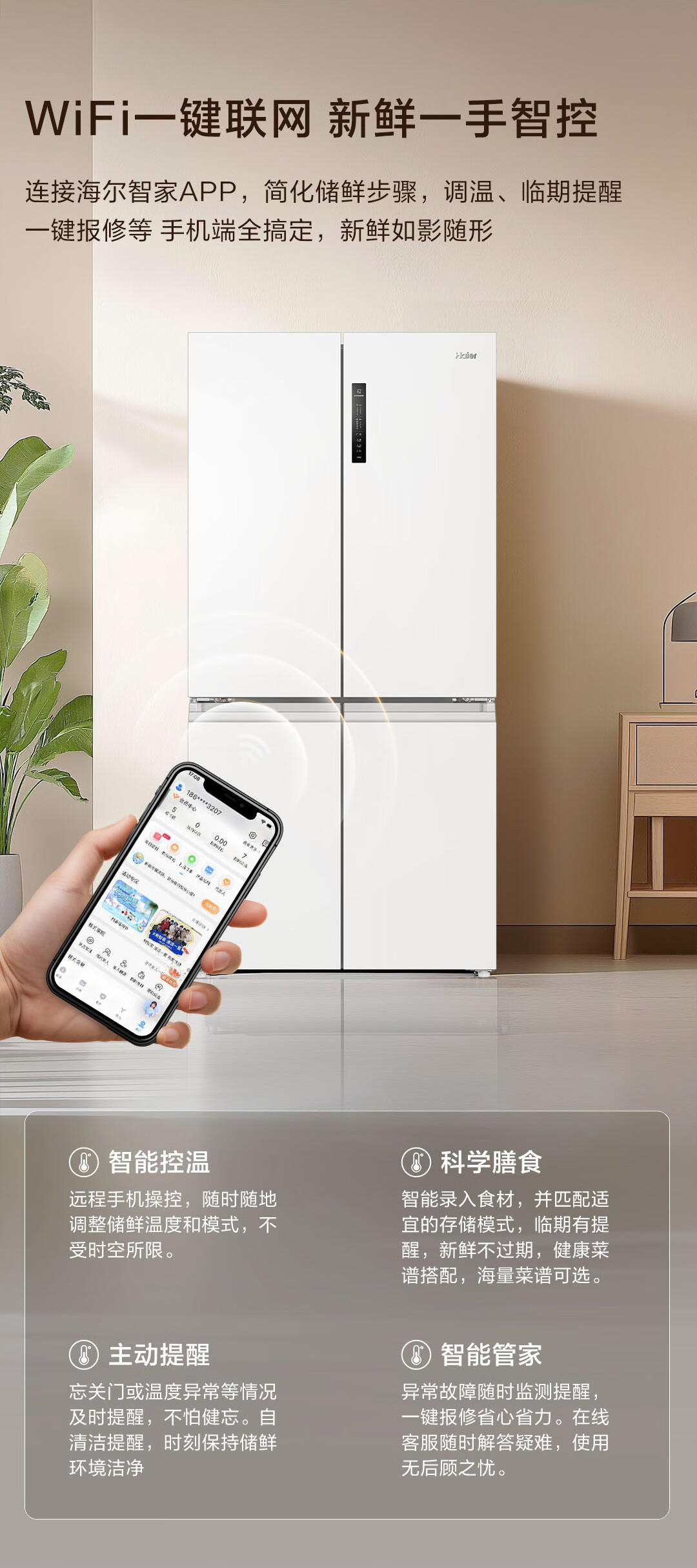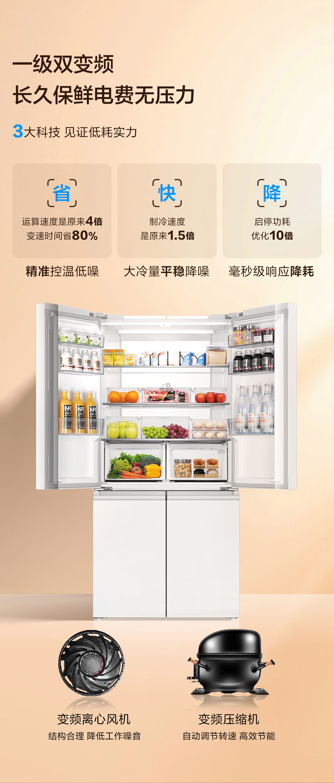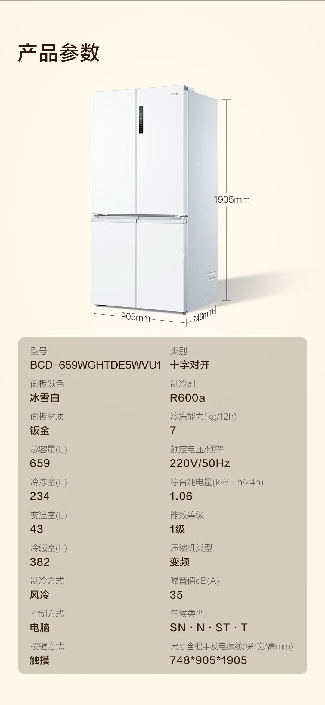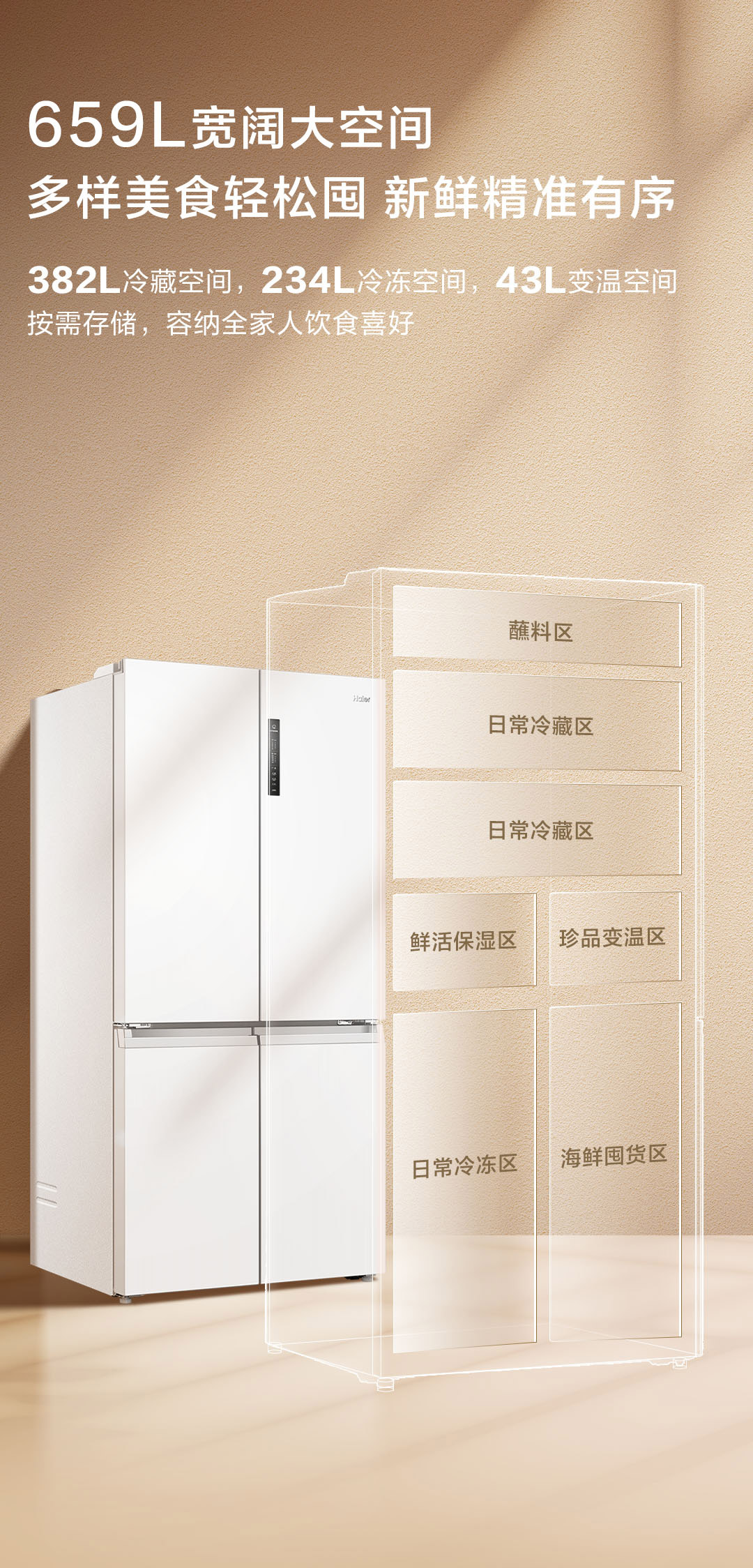 海尔(Haier)659升十字对开门四开门家用电冰箱一级能效节能无霜超大容量BCD-659WGHTDE5WVU1