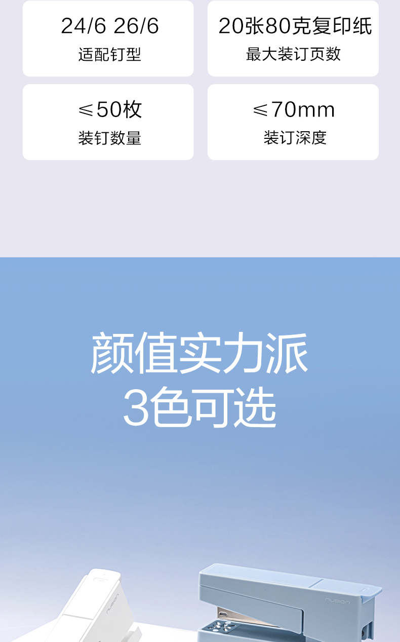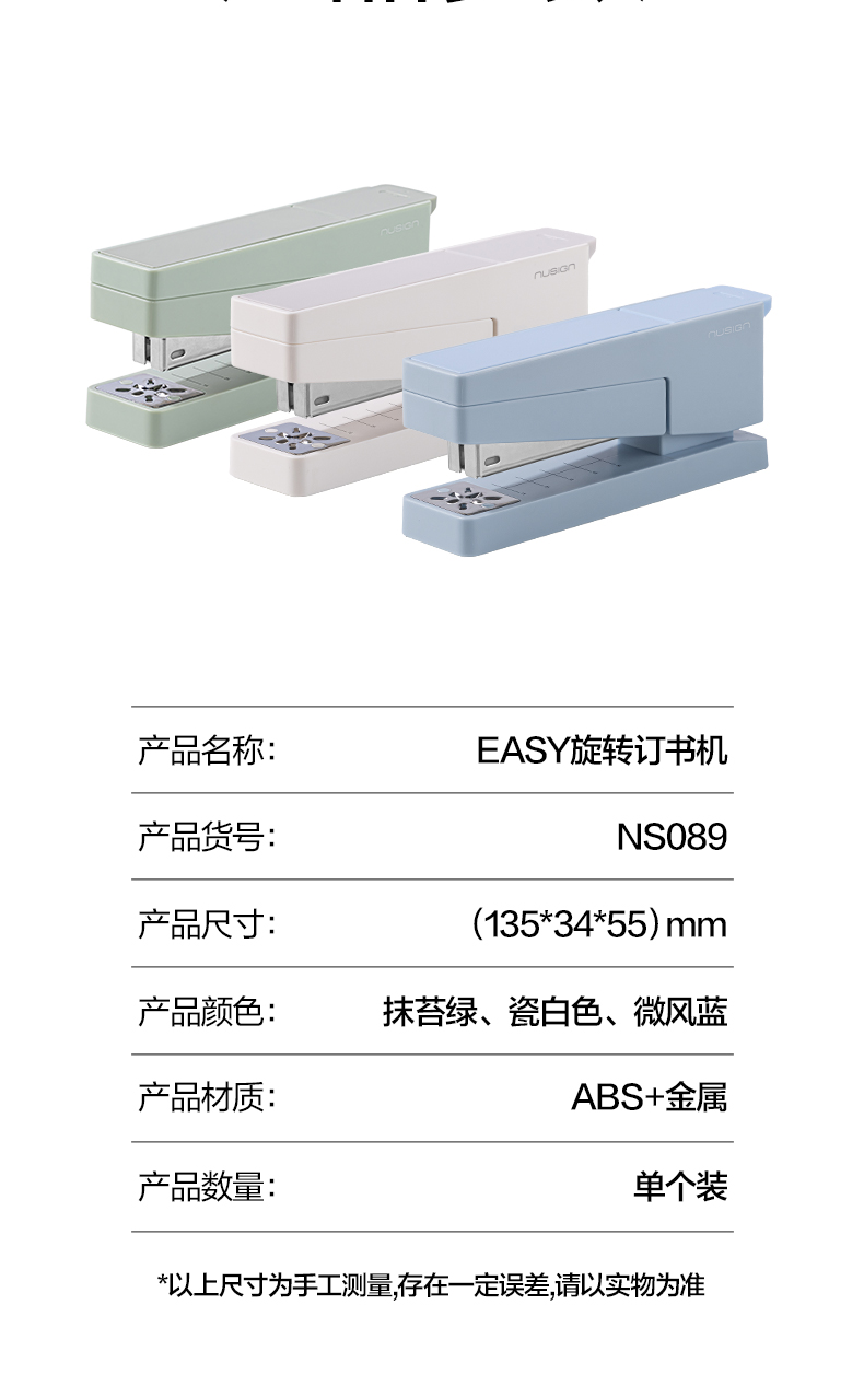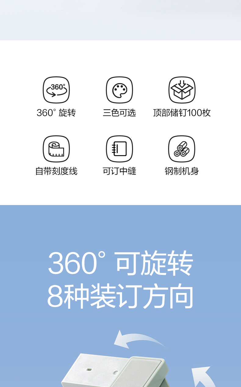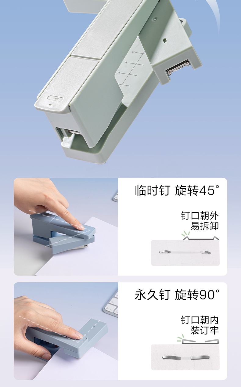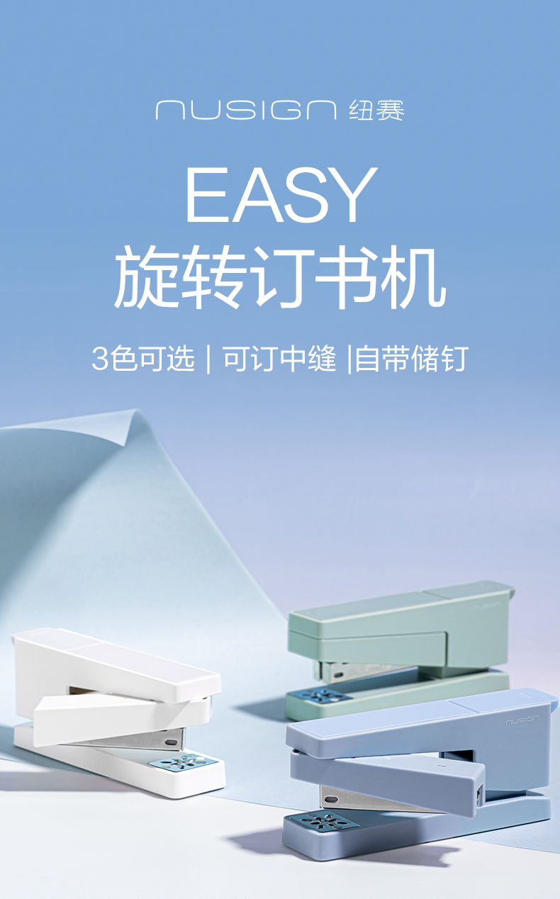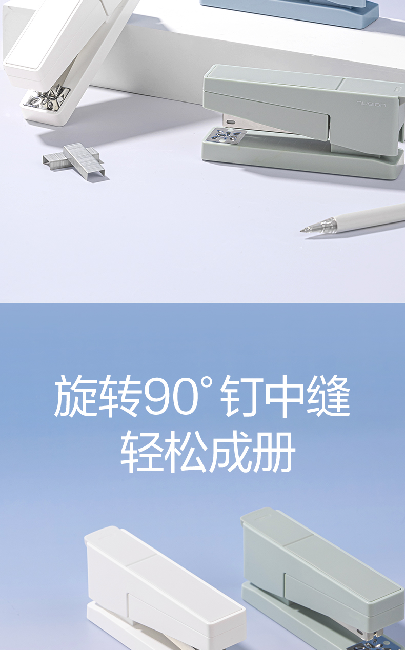 得力纽赛可旋转订书机学生用订书器便携式办公家用学生文具高颜值多功能省力钉定厚书订中缝装订用品