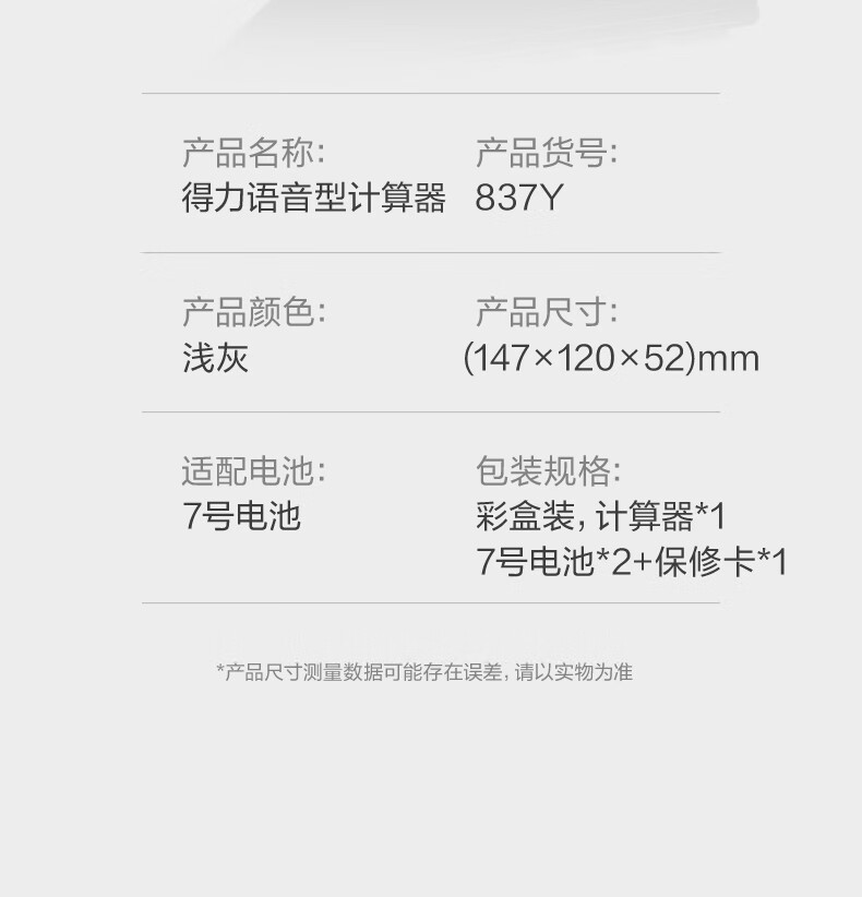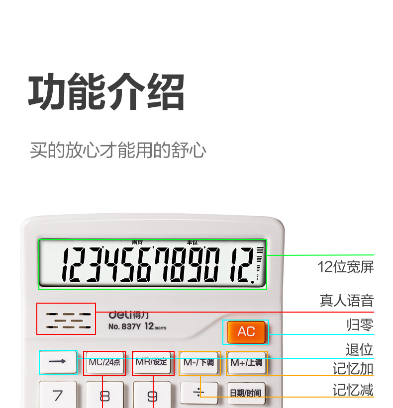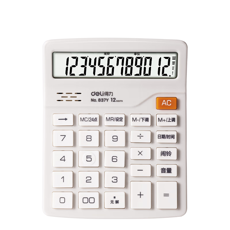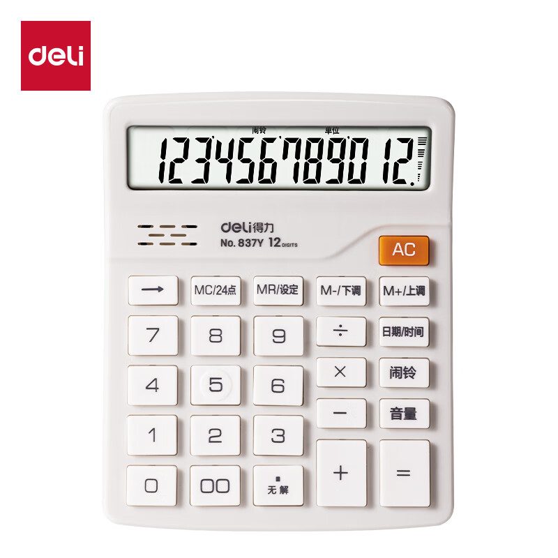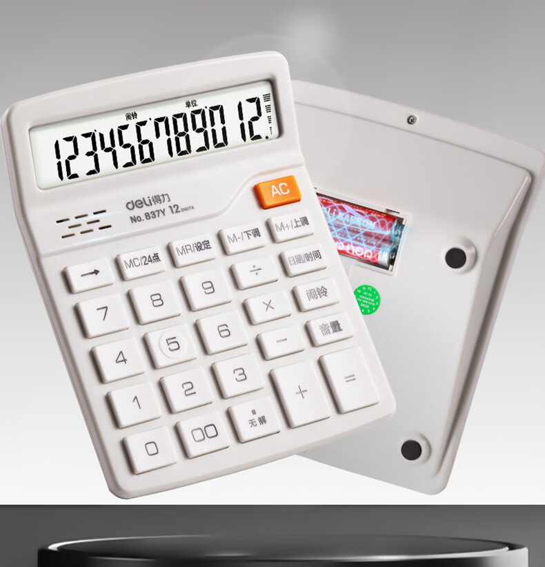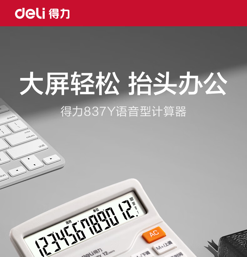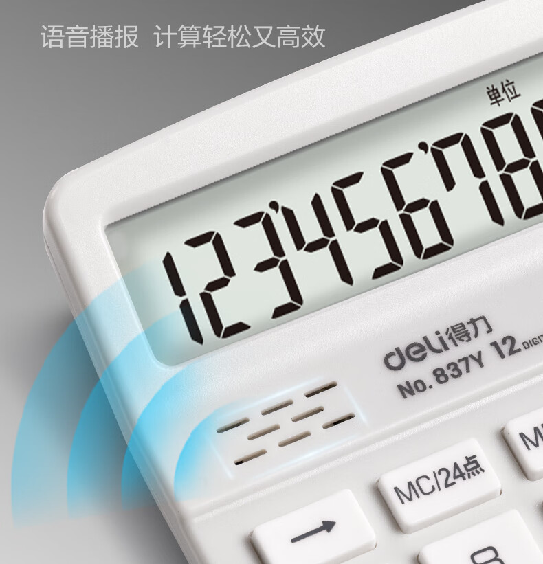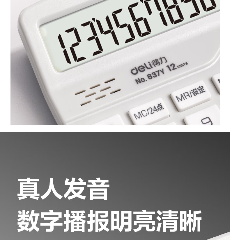 得力(deli)12位数通用语音计算机 桌面语音计算器 财务办公用品 837Y浅灰 新老混发